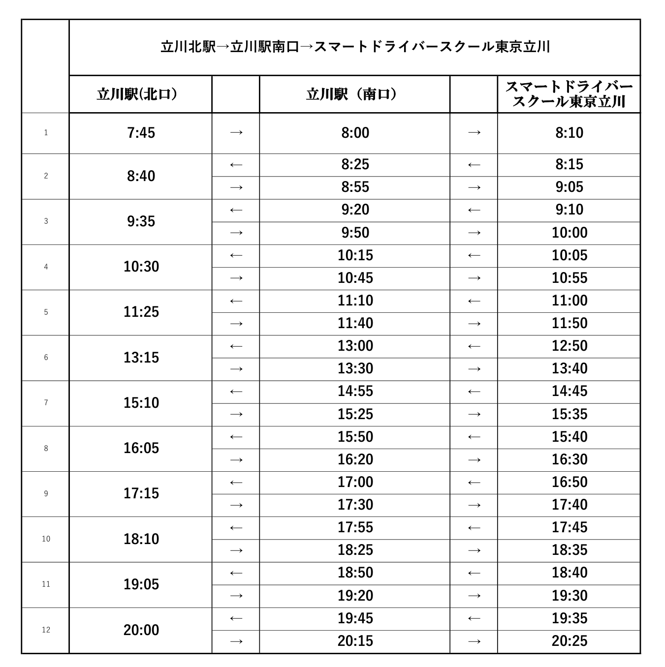 「北口」「南口」の時刻表は、こちらをご確認ください ⇒送迎バス時刻表